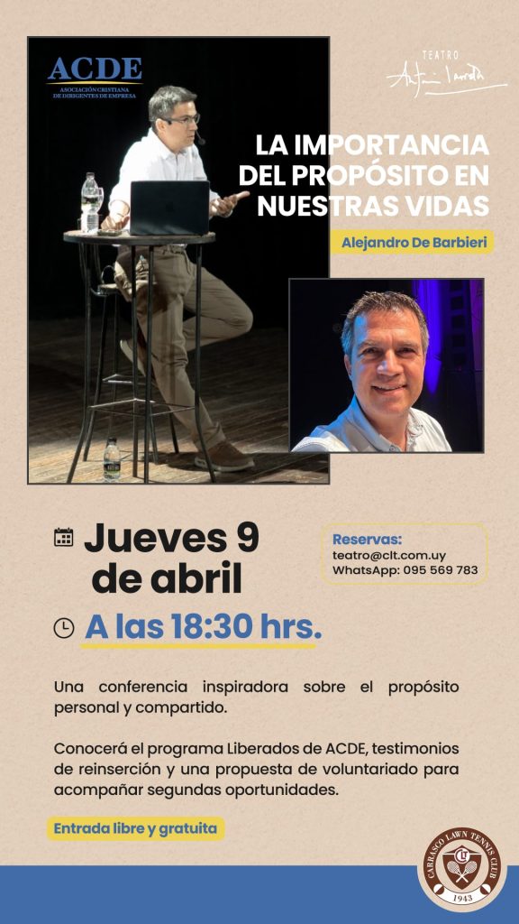 Te invitamos a participar de la conferencia “La importancia del propósito en nuestras vidas”, a cargo del Ps. Alejandro De Barbieri, un espacio inspirador para profundizar en el sentido de nuestras decisiones y en el impacto que podemos tener en la vida de otros. En esta oportunidad, la invitación es también para conocer de cerca el Programa Liberados de ACDE.